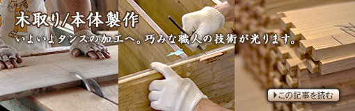 10の工程からなる桐たんす製作。一体、どのような工程があり、どのような職人がそれを行っているのでしょうか。 その疑問を解消すべく、職人たちの仕事場に取材に行ってきました。