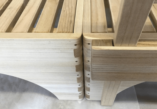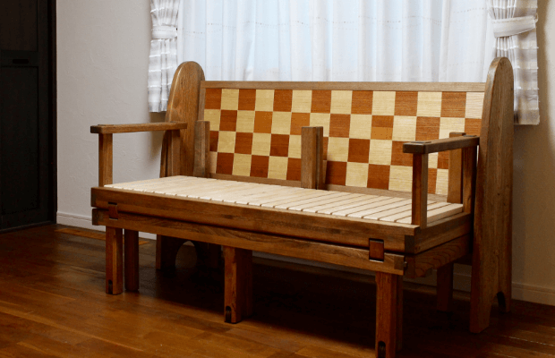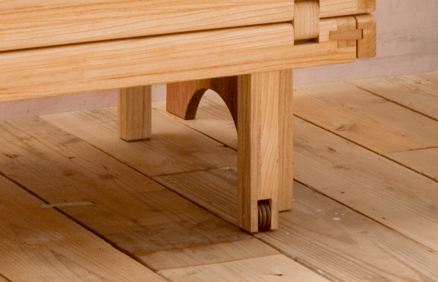 職人の目と手で木の性質を見極め、削り・組み・磨きといった工程をすべて手仕事で丁寧に行うことで、既製品にはない滑らかさと強度を実現。金具を極力使わず、木組みで仕上げる伝統技法により、耐久性にも優れています。