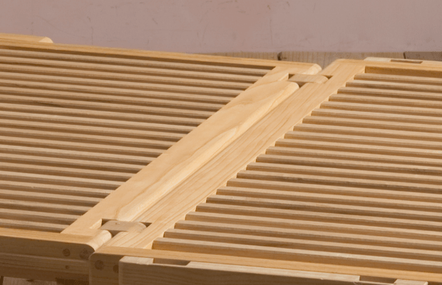 木製の「蝶番」でお作りしておりますのでサビたり、冷たく感じたりすることがございません。
