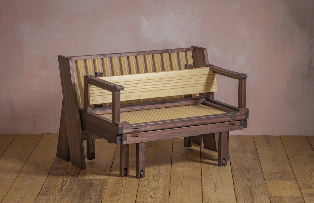 折りたたんでベンチにもなる軽量ベッド。