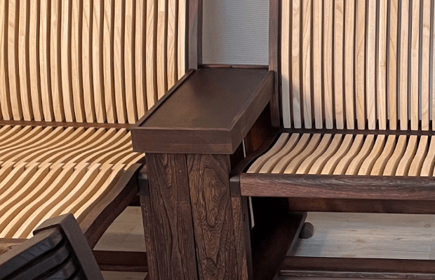 座面と背中は柔らかい桐材で作成しております。曲線で体を支えますので長時間お座りいただいても体に負担がかかりません。