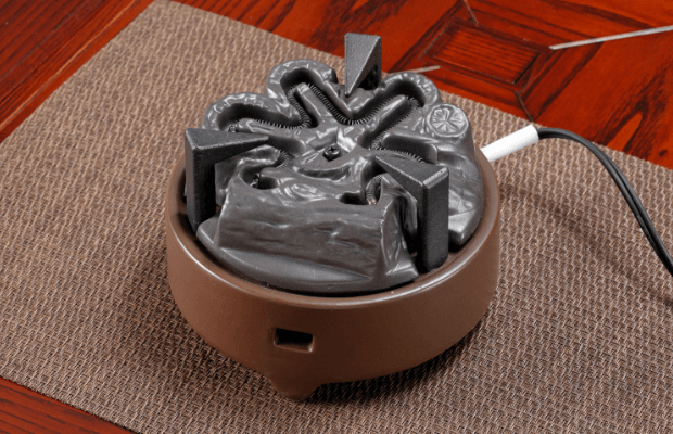 炉の中に直接入れてスイッチ一つで使用可能。煙が出ないので家の中でも安心して使用できます。