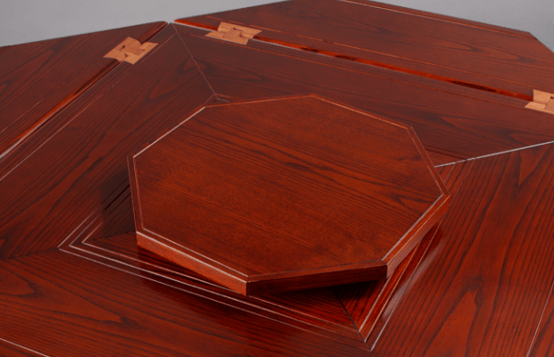 テーブルを広く使用する際に便利な、八角形のかたちの回転テーブルが付いています。