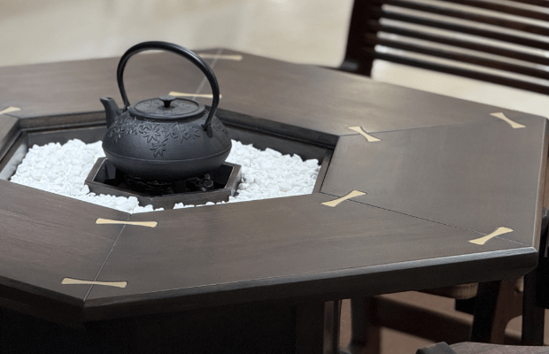鉄瓶を置いて、和の情緒ともにお茶を楽しむひとときにも、IHクッキングヒーターを使って、