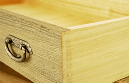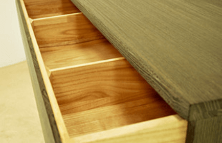 引き出しの底板、側板、後ろ板は、総て『桐無垢板』を使用し、木釘で作ってあります。