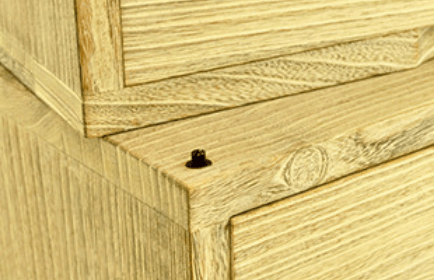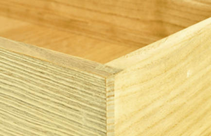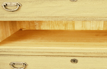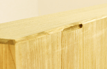 長年使えるタンスは見えない所にこそ良質な桐を使用しています。厚みは約9mmの桐材を使用し、金釘は使用せずに木釘を使って接着しています。