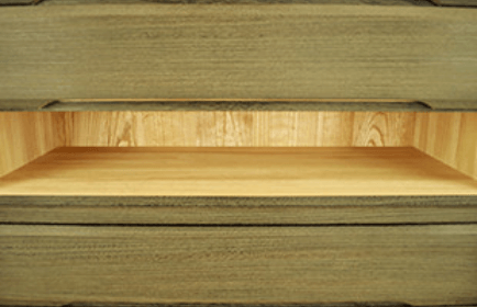 本体の裏側です。桐無垢材でできていますので、部屋の一番湿気が強い壁側に長年置いても安心してお使いいただけます。