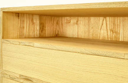本体の側面です。金釘を一切使用せずに、無垢板を使用しているのが見て判ります。丈夫な材料と造りで、長年ご使用いただけます。